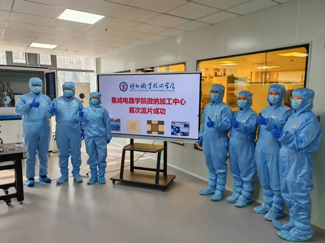 1月30日上午,在德州职业技术学院集成电路制造工艺实践中心,一片硅片经过薄膜制备、光刻图形化、刻蚀、清洗去胶、封装键合、功能测试,成功制造出多颗可用于传…